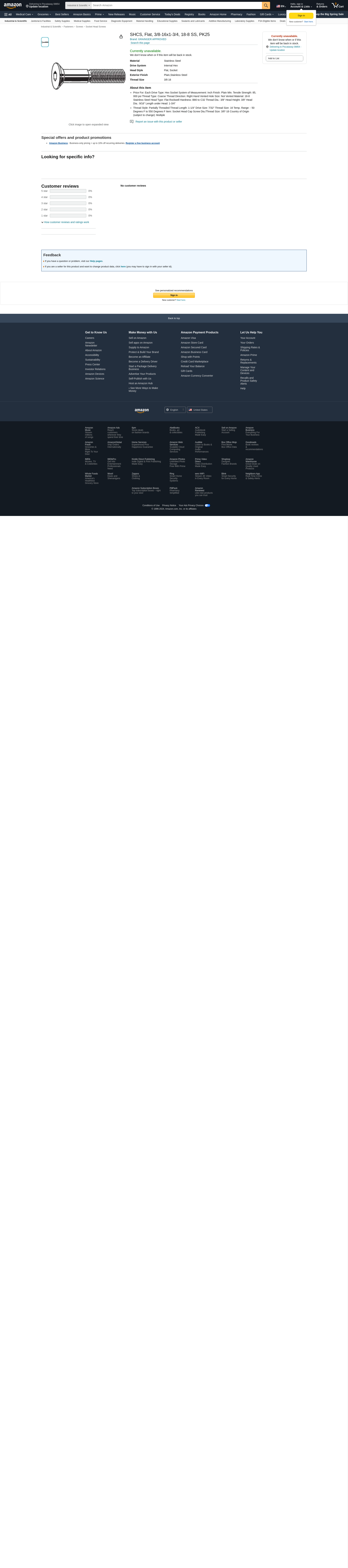 | Feature | Price For: Each Drive Type: Hex Socket System of Measurement: Inch Finish: Plain Min. Tensile Strength: 85, 000 psi Thread Type: Coarse Thread Direction: Right Hand Vented Hole Size: Not Vented Material: 18-8 Stainless Steel Head Type: Flat Rockwell Hardness: B80 to C32 Thread Dia.: 3/8" Head Height: 3/8" Head Dia.: 9/16" Length under Head: 1-3/4" |