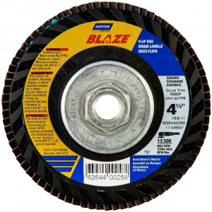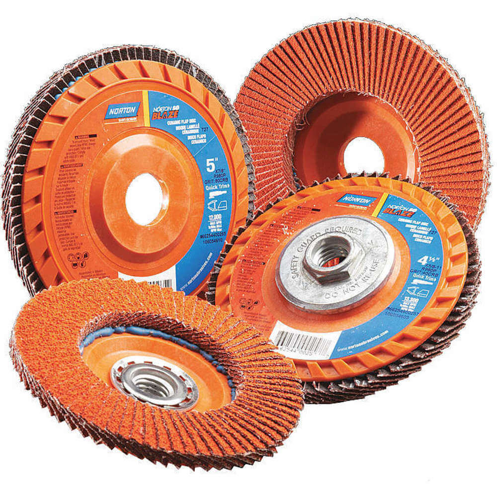 Norton 66254400258 4-1/2x5/8-11” Blaze R980P Ceramic Alumina Type 27 Quick Trim Flap Discs, 60 Grit, Coarse, 10 Pack