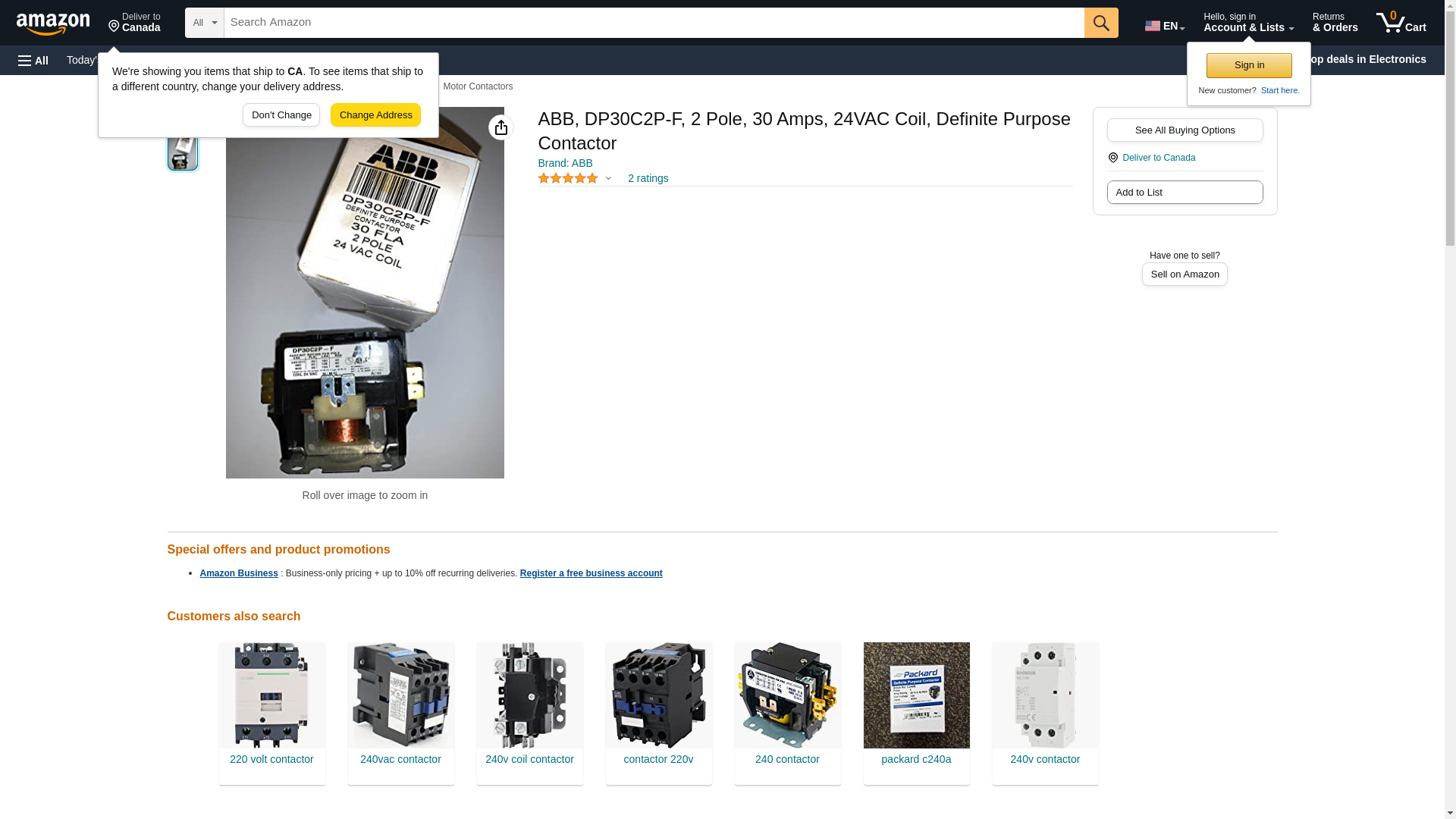ABB ABB DP30C2P-F 30A, 2P, Definite Purpose Contactor