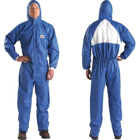 3M 4530 Disposable Coveralls are made of lightweight, breathable polypropylene with flame resistance. Designed to be worn over primary FR garments, they can help provide protection against dusts and light liquid splashes. Use in welding, metal grinding, general powder handling, and woodworking. Also suitable for abatement and remediation, agriculture, cleaning and maintenance, general industry and manufacturing, nonhazardous operations, pharmeceutical cleanroom use, and welding or metalwork. Hooded Coverall, Blue/White, L, PK25