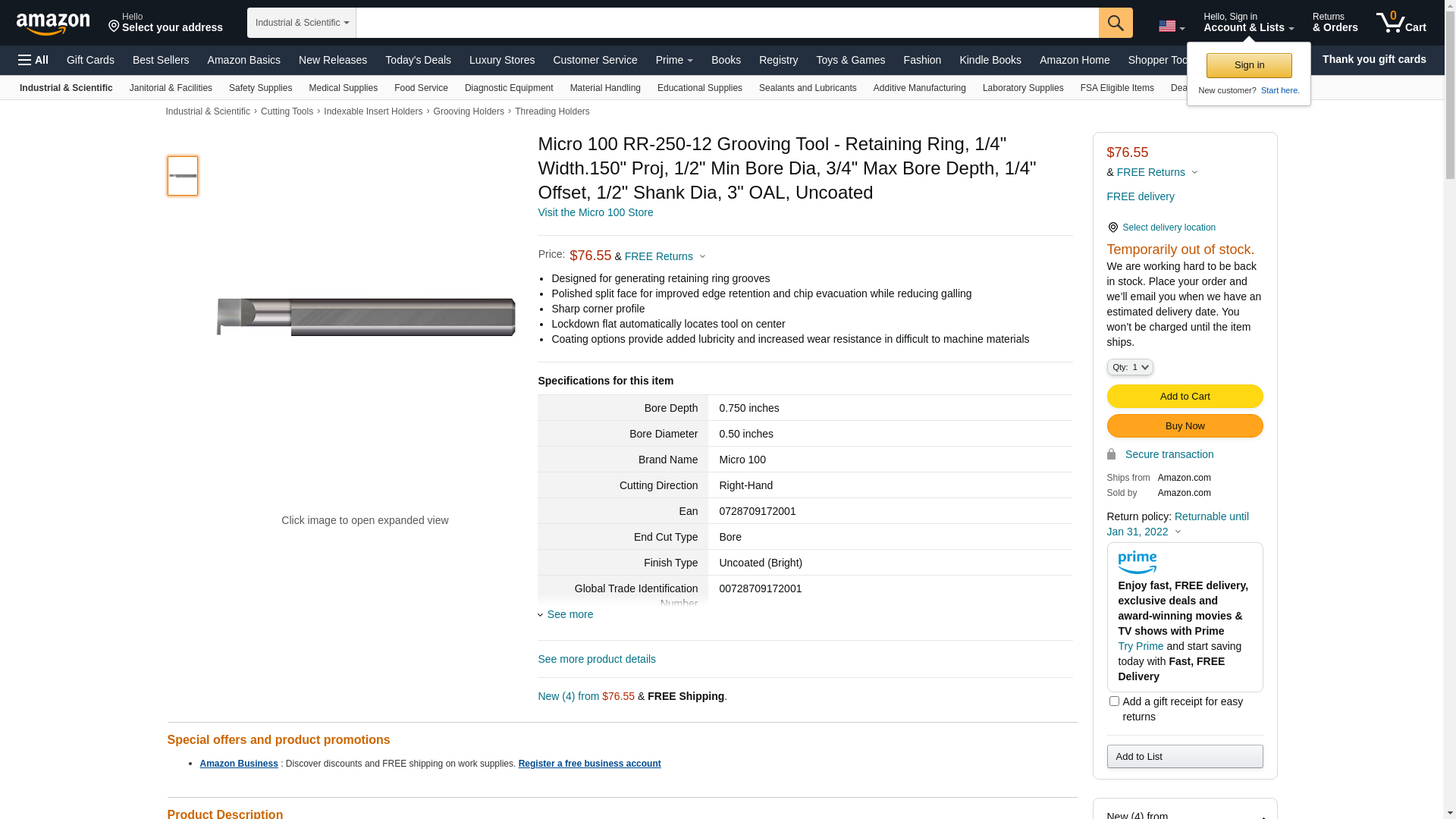 Micro 100 Grooving Tool RR-250-12 ZO-G8248292 - SIM Supply