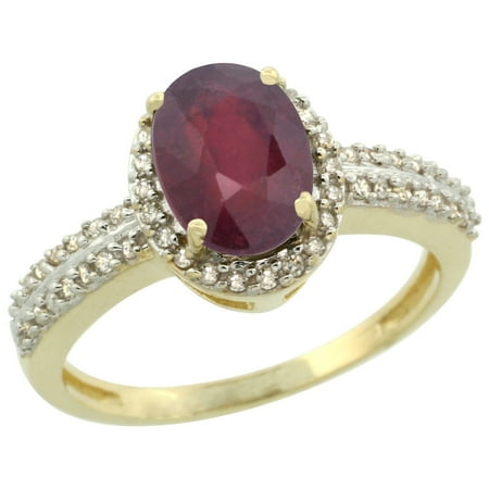 10k Yellow Gold Natural HQ Ruby Ring Oval 8x6mm Diamond Halo, sizes 5-10