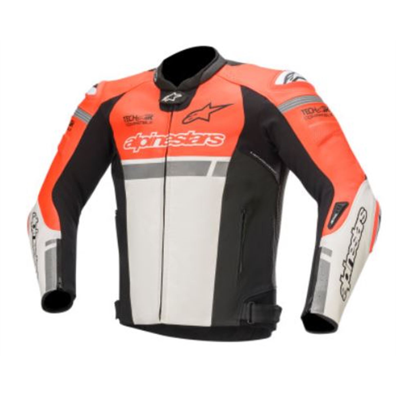 Alpinestars Missile Ignition Airflow Leather Tech-Air Compatible Men's Street Motorcycle Jacket - Red Fluo/White/Black / 54