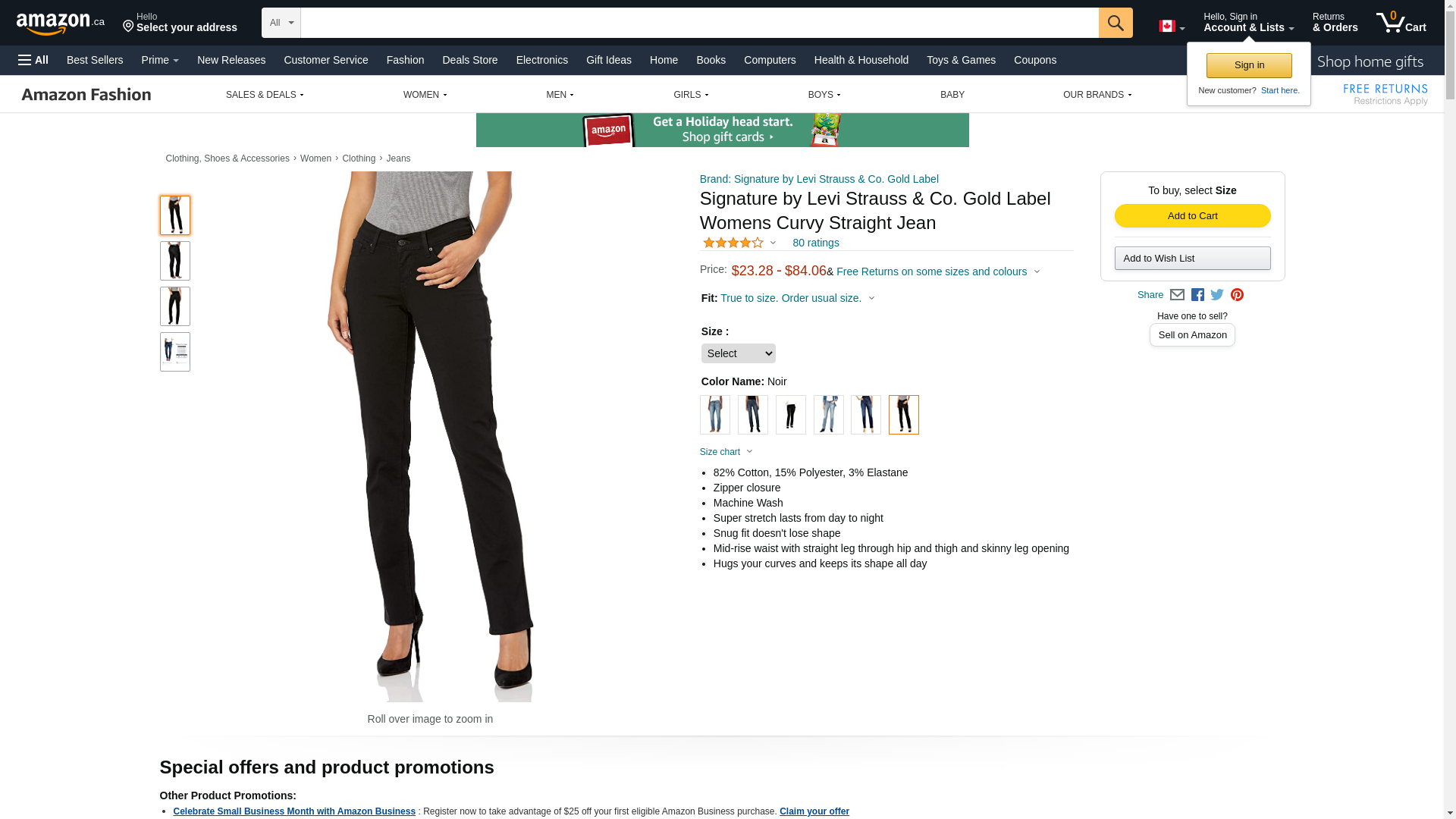 Signature By Levi Strauss & Co Women's Curvy Straight Jeans, Noir, 16 Short