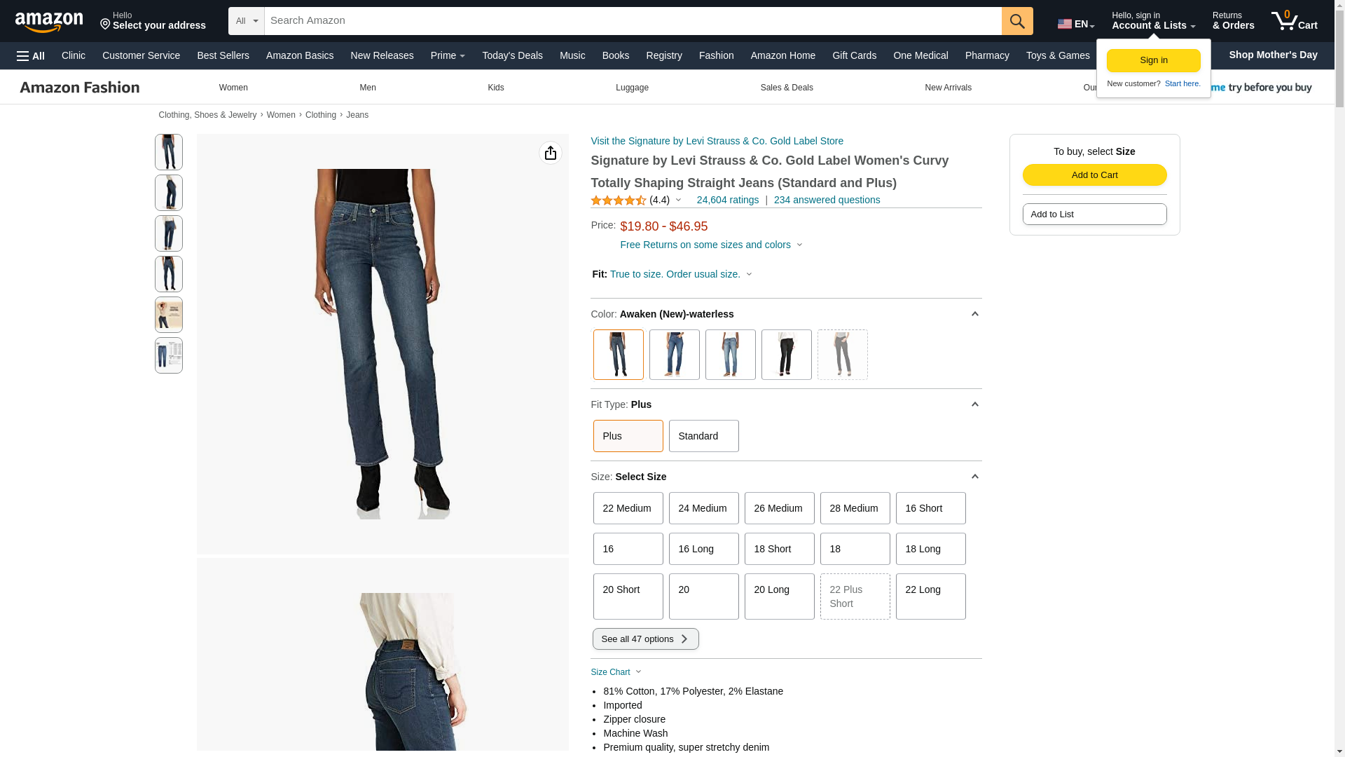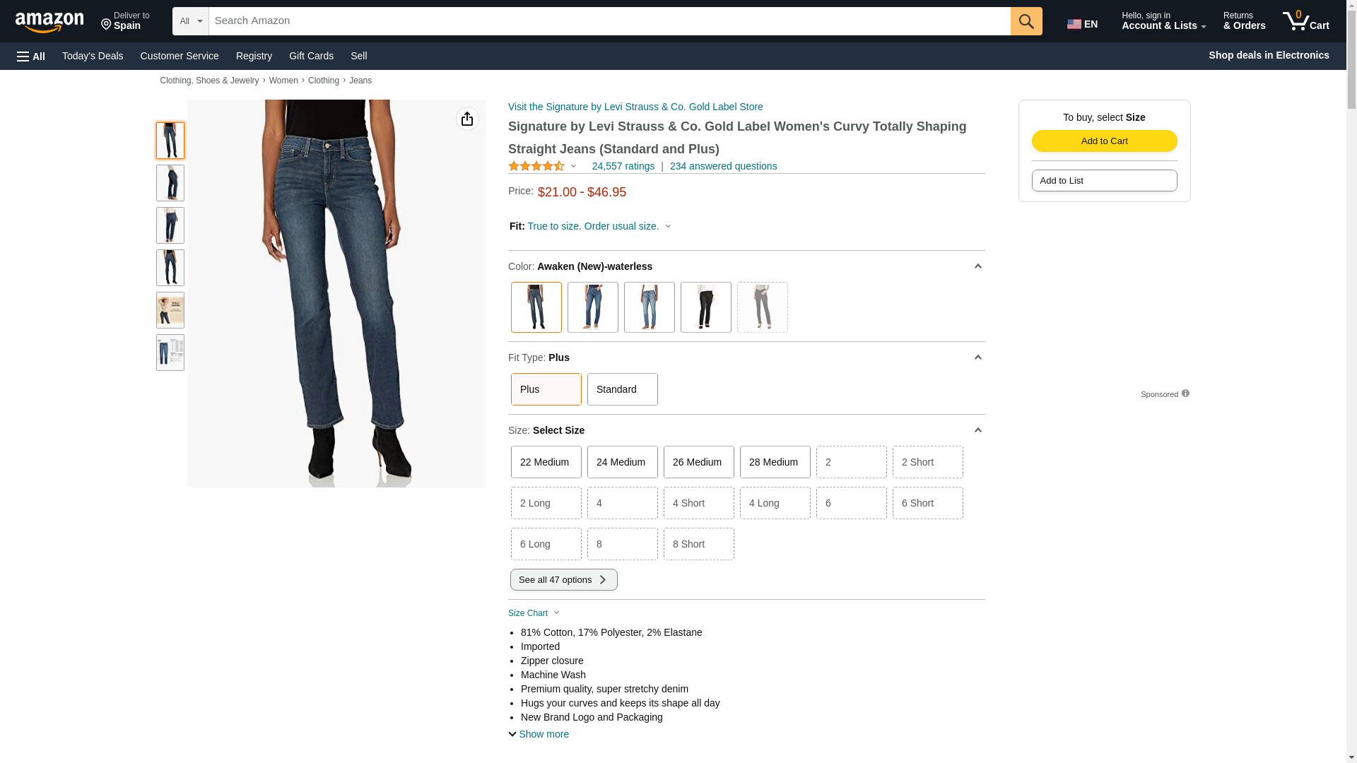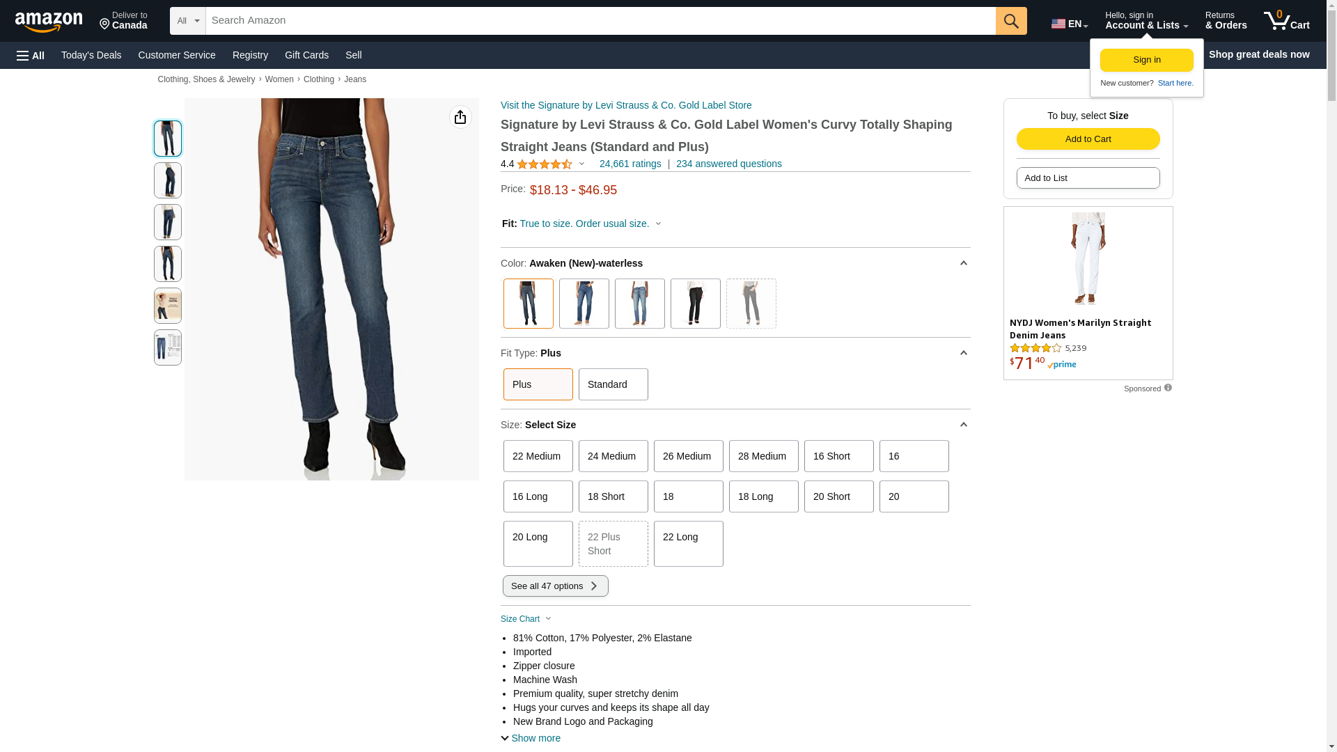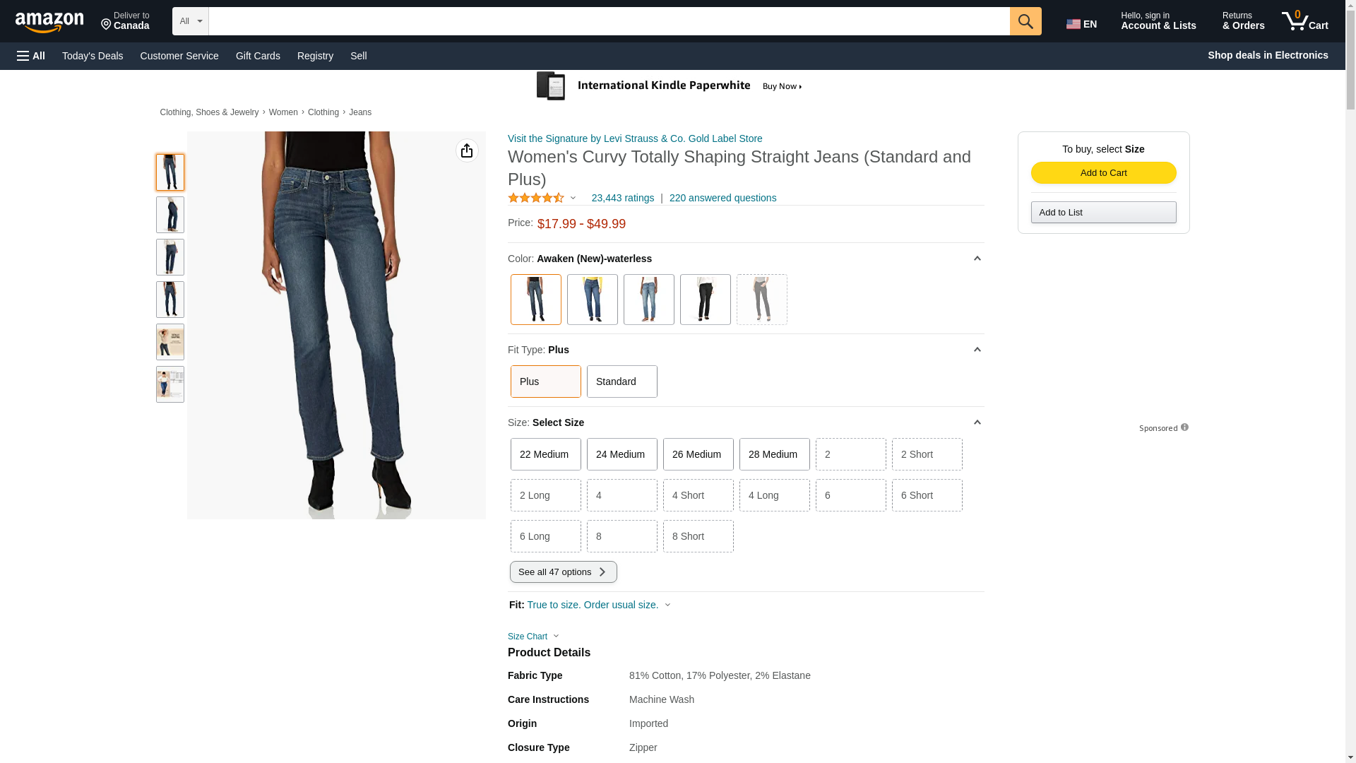 Signature By Levi Strauss & Co Women's Curvy Straight Jeans, Awaken, 18 Medium