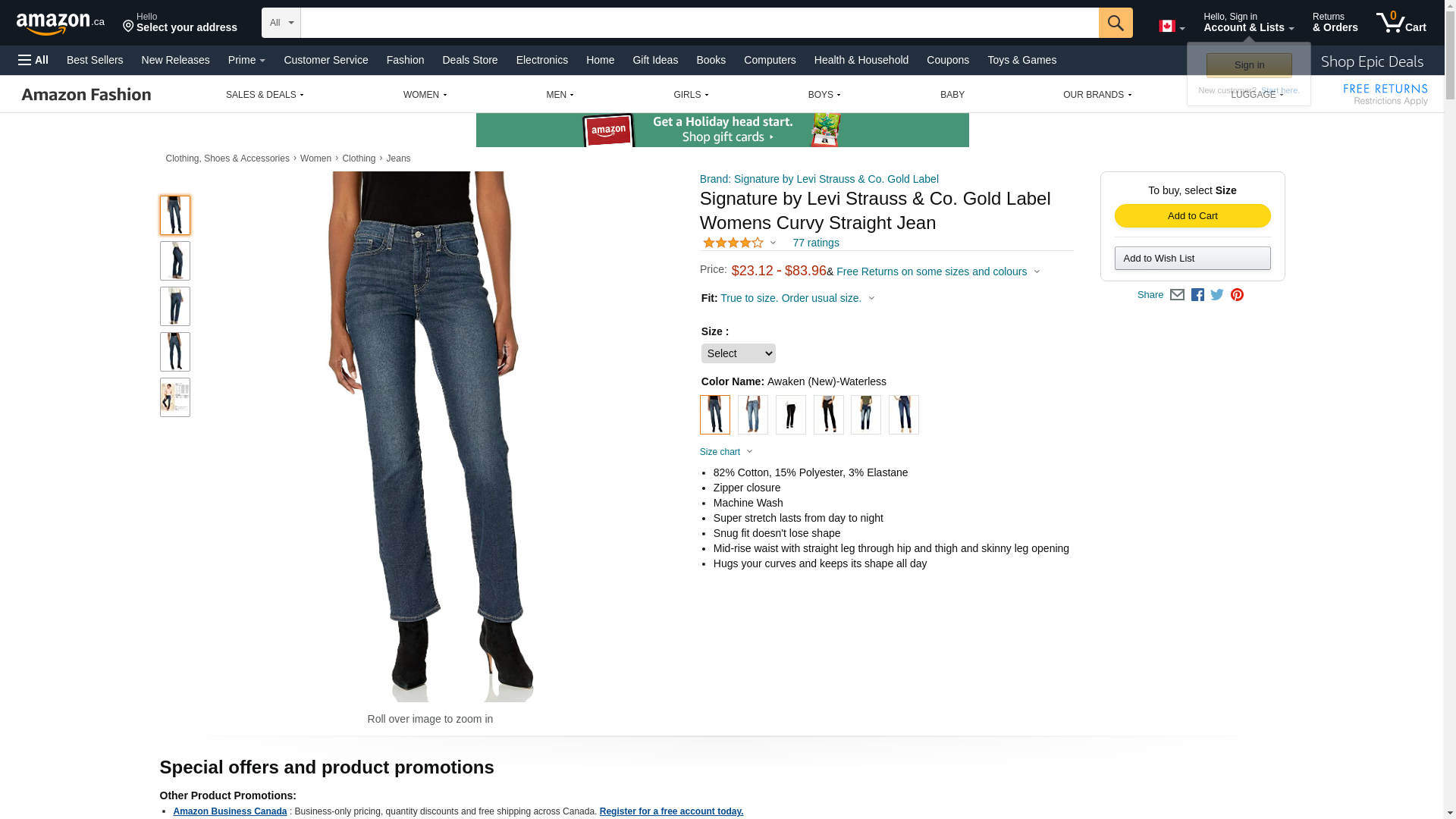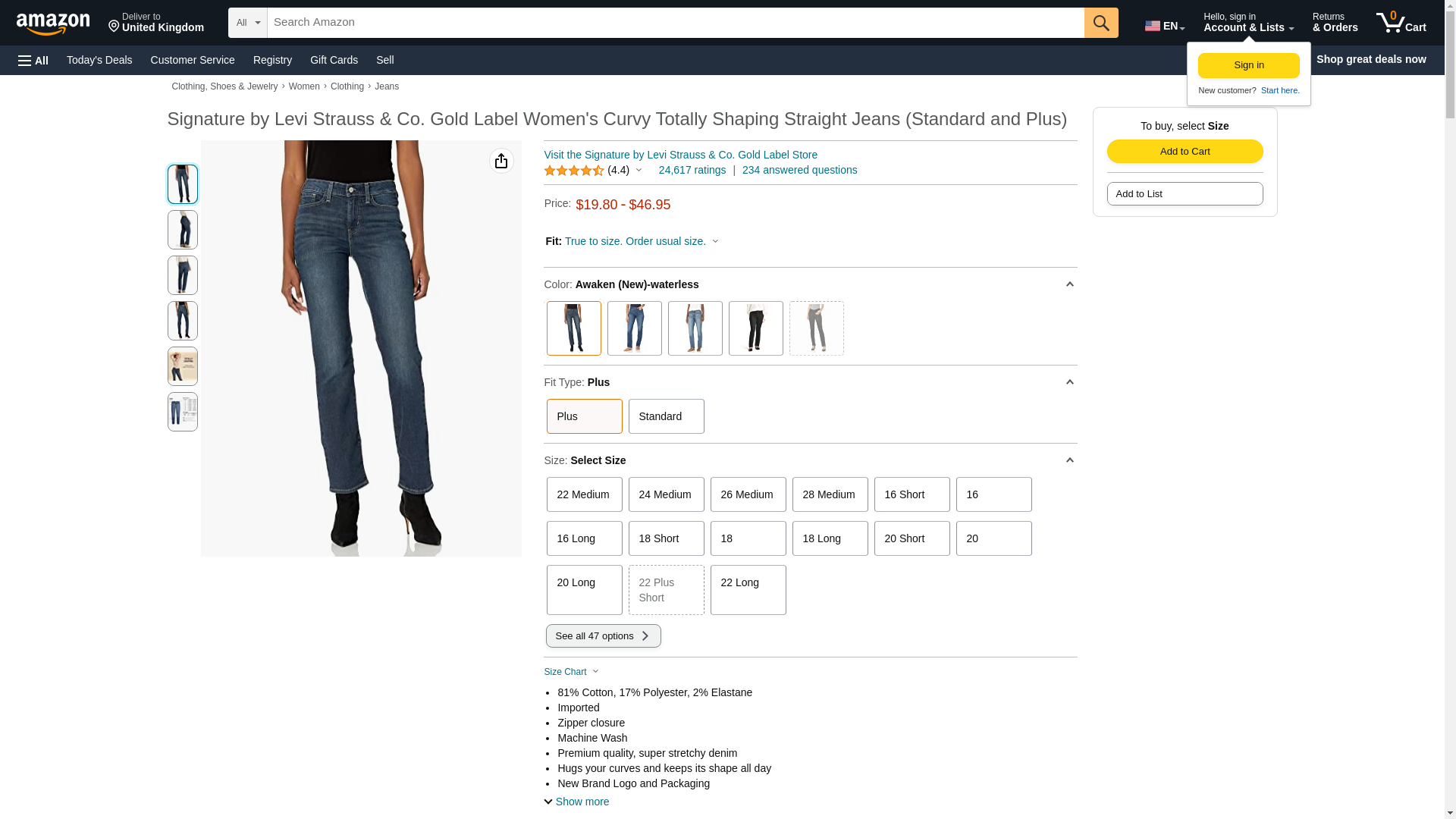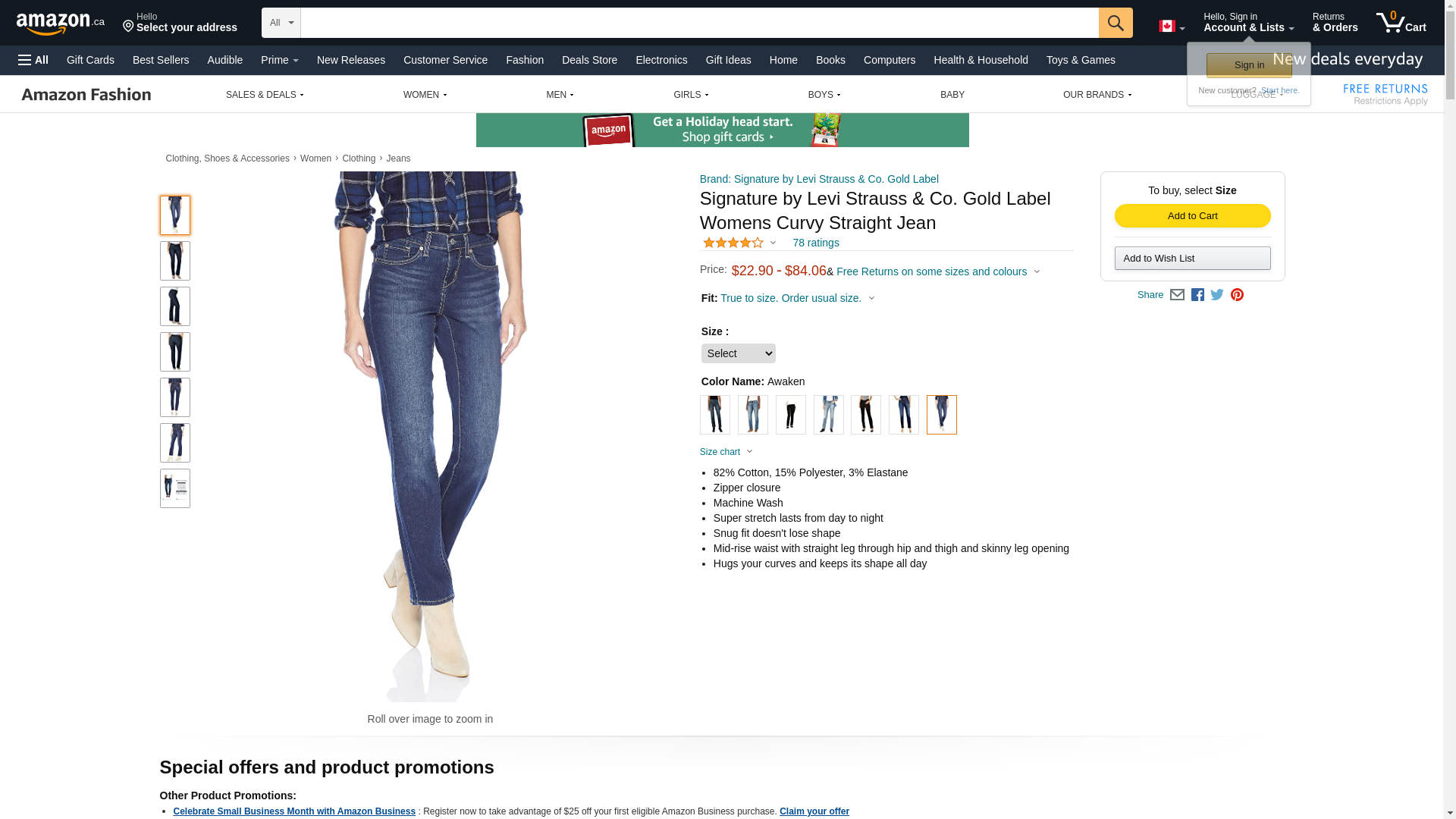 Signature By Levi Strauss & Co Women's Curvy Straight Jeans, Awaken, 18 Medium