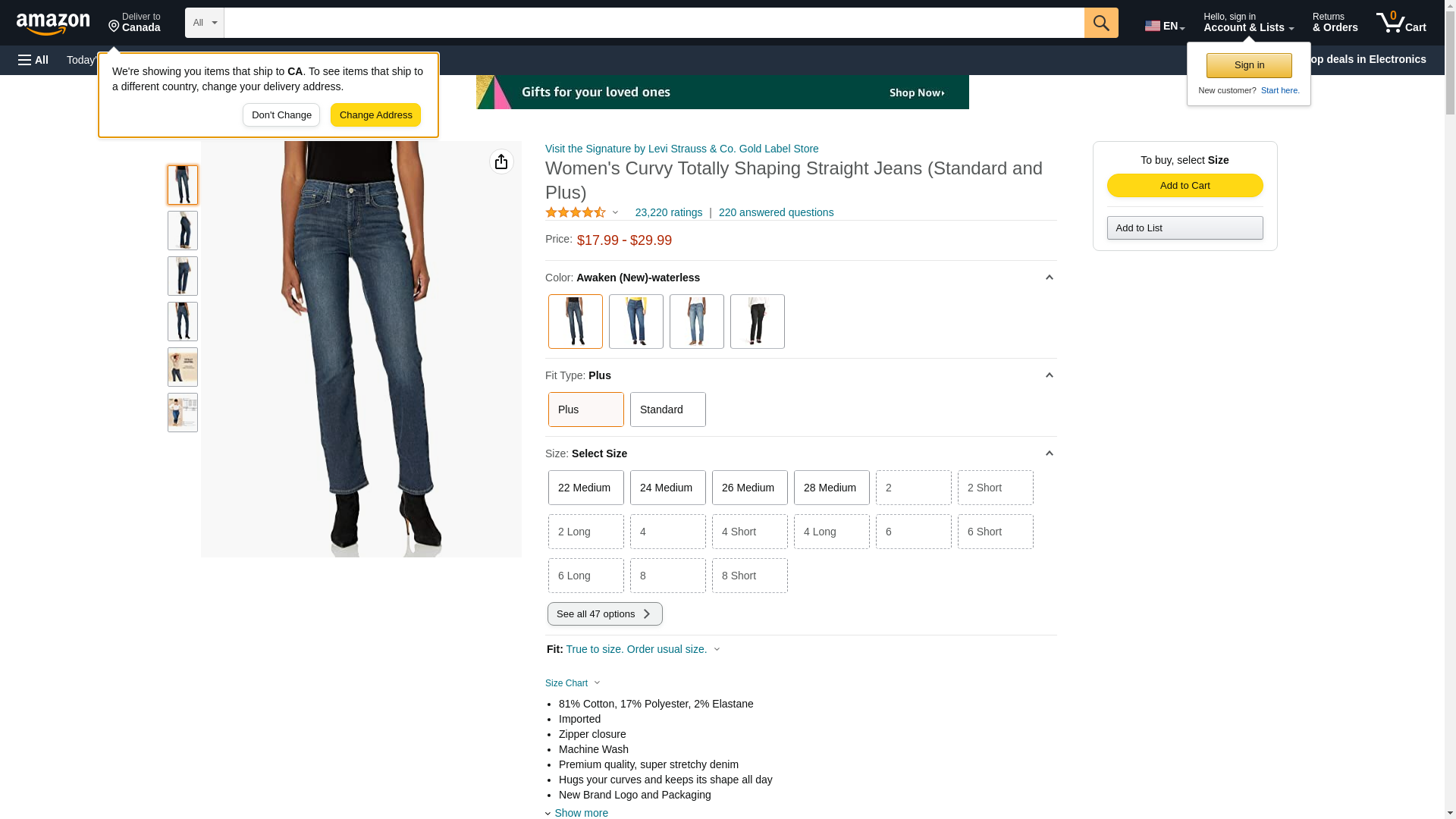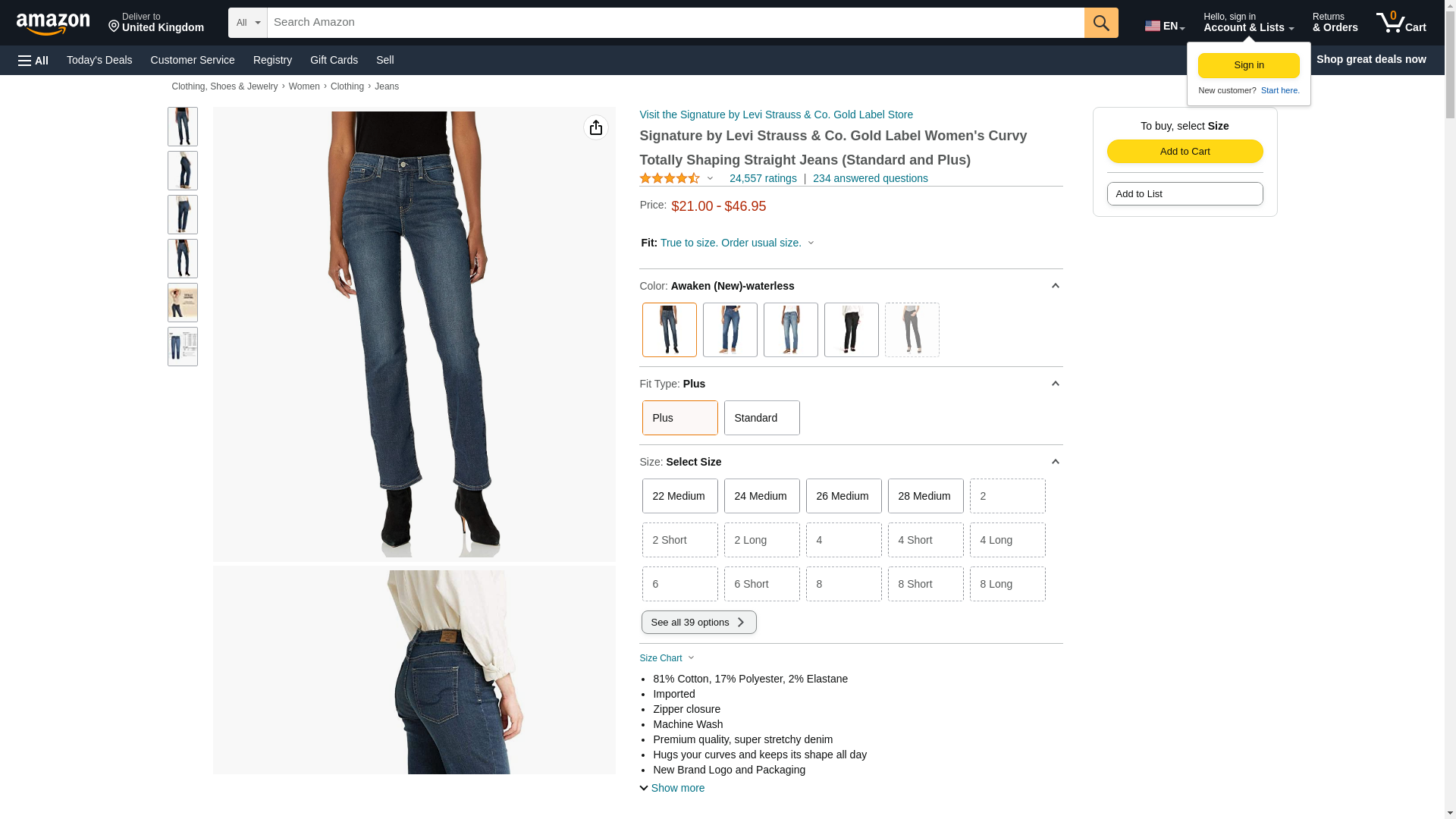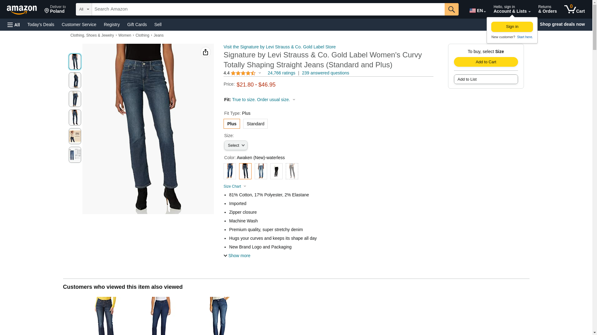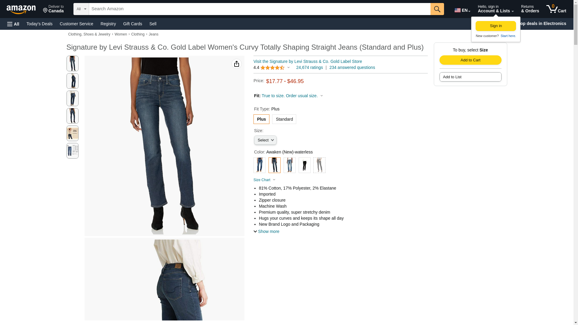 Signature By Levi Strauss & Co Women's Curvy Straight Jeans, Awaken, 18 Medium