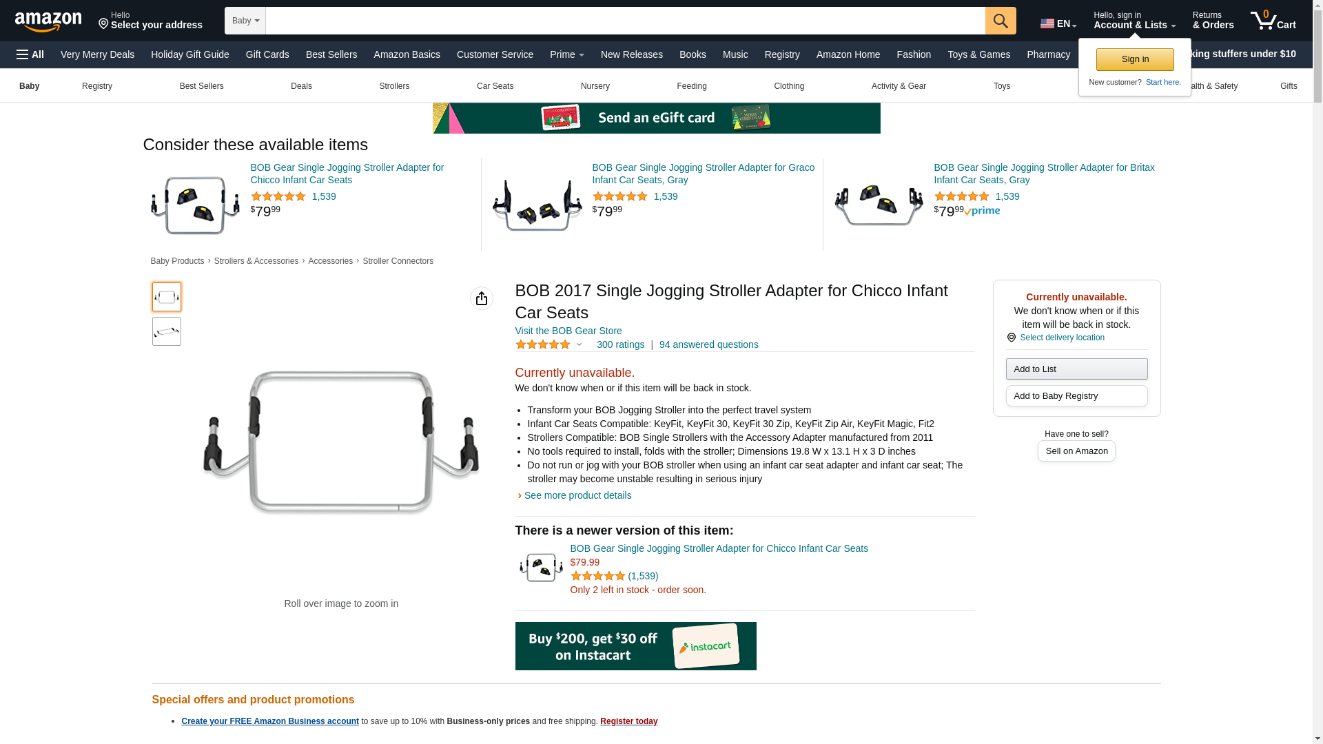 BOB 2017 Single Jogging Stroller Adapter for Chicco Infant Car Seats