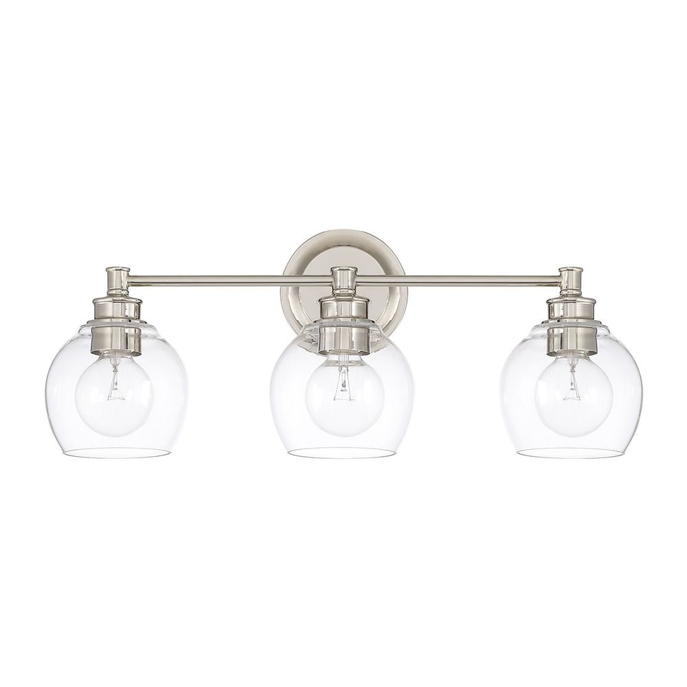 Capital Lighting 121131PN-426 Mid-Century Clear Glass Bath Vanity Wall Mount, 3-Light 300 Total Watts, 10" H x 24" W, Polished Nickel