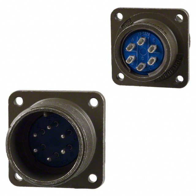Specification: MIL-DTL-5015<br>Shielding: Yes<br>Connector Type: Circular<br>Connector Style: Receptacle<br>Mounting Type: Box - Front Mount - Thru Holes<br>Number of Contacts: 6<br>Contact Style: Pin<br>Termination Method: Solder<br>Insert Arrangement: 18-12<br>Contact Size: 6#16<br>Contacts Supplied: Yes<br>Contact Material: Brass or Copper Alloy<br>Contact Plating: Silver<br>Shell Material: Aluminum Alloy<br>Shell Plating: Non-Conductive Black Alloy<br>Shell Color: Black<br>Insert Material: Diallyl Phthalate<br>Amperage Rating: 13A<br>Operating Voltage DC: 700<br>Operating Voltage AC: 500<br>Operating Temperature: +257 (+125) for 60 hours, +185 (+85) for 1000 hours<br>Contact Mating life: 100<br>RoHS: Yes<br>Insert Rotation Keying: Normal