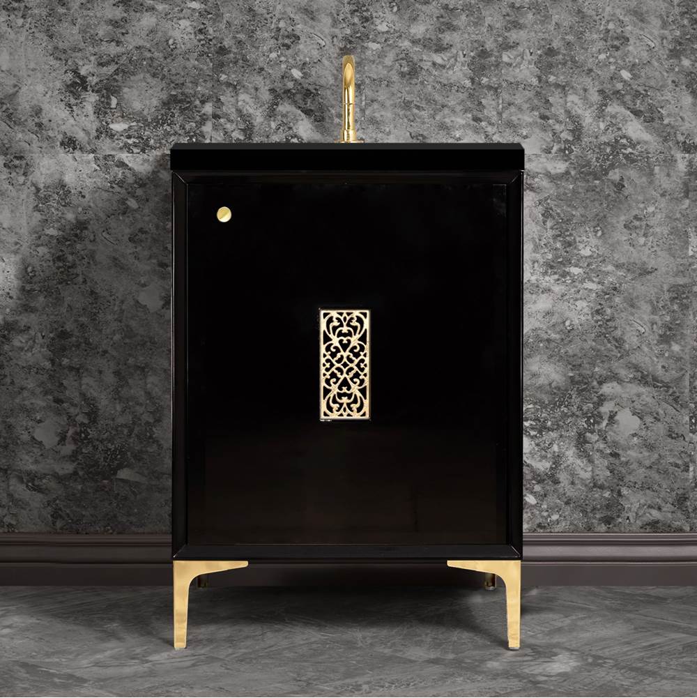 Linkasink - VAN36B-012-PB - FRAME with Filigree Grate 36'' Wide Vanity, Black, Polished Brass Hardware, 36'' x 22'' x 33.5'' (without vanity top)
