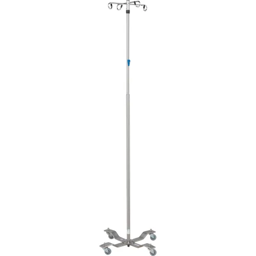 Blickman IV Stand, Stainless Steel IV Pole on 4-Leg Aluminum Base with 4 Hooks, Model 8889SS-4