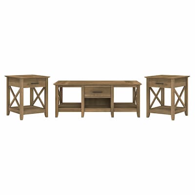 Bush Furniture Key West 47" x 24" Coffee Table with 2 End Tables, Reclaimed Pine (KWS023RCP) | Quill.com