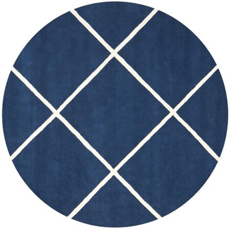 SAFAVIEH Chatham Collection 7' Round Dark Blue/Ivory CHT720C Handmade Diamond Trellis Premium Wool Area Rug