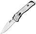 - Straight edge, 3-Inch AUS-8 steel Folding blade has a drop point shape with a satin finish