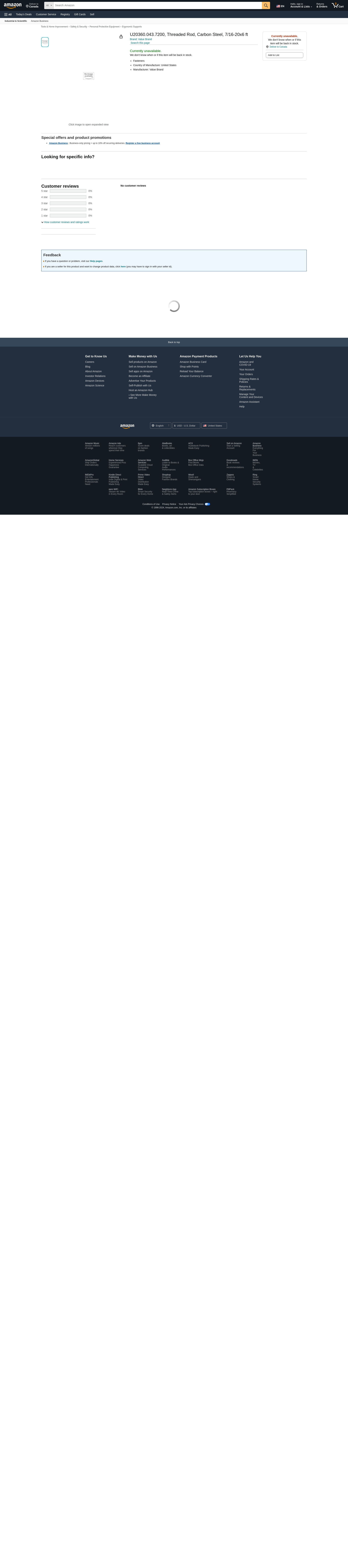 Value Brand, U20360.043.7200, Threaded Rod, Carbon Steel, 7/16-20x6 ft