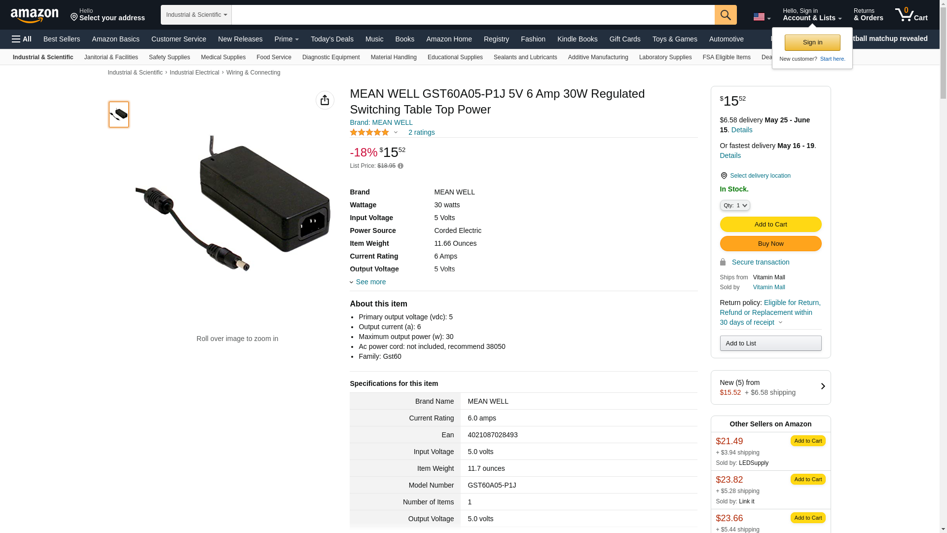 ![]() powersupplymall.com | GST60A05-P1J | 1 | 37 | 1 | 1 @ $19.83 |