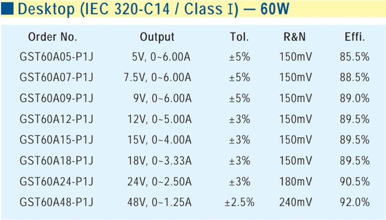 MEAN WELL GST60A05-P1J 5V 6 Amp 30W Regulated Switching Table Top Power