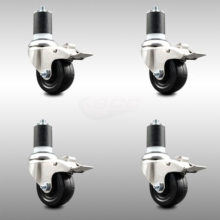 Service Caster Brand 3.5 Inch 316 Stainless Steel Light Duty Swivel Expanding Stem Caster Set of 4 Hard Rubber Caster Wheels and 1-7/8” Stem–1,140lbs. Total Cpty–Casters with Total Locking Brakes