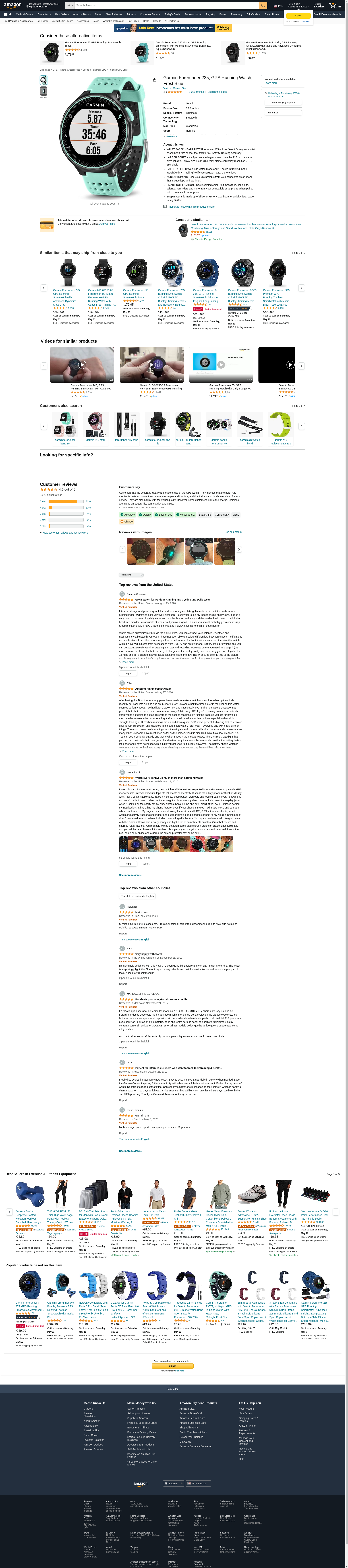 Bag a personal best with the Garmin Forerunner 235, a wrist-based heart rate GPS and GLONASS running watch with smart features like audio prompts and text/call notifications. Garmin's Elevate technology measures heart rate at the wrist, giving you the option to run strapless while the colorful displays beats per minute in real time. When you're not running, the Forerunner 235 double as an activity tracker, counting steps, calories and sleep. Wireless connectivity delivers automatic uploads to Garmin Connect, live tracking, audio prompts, smart notifications and social media sharing.