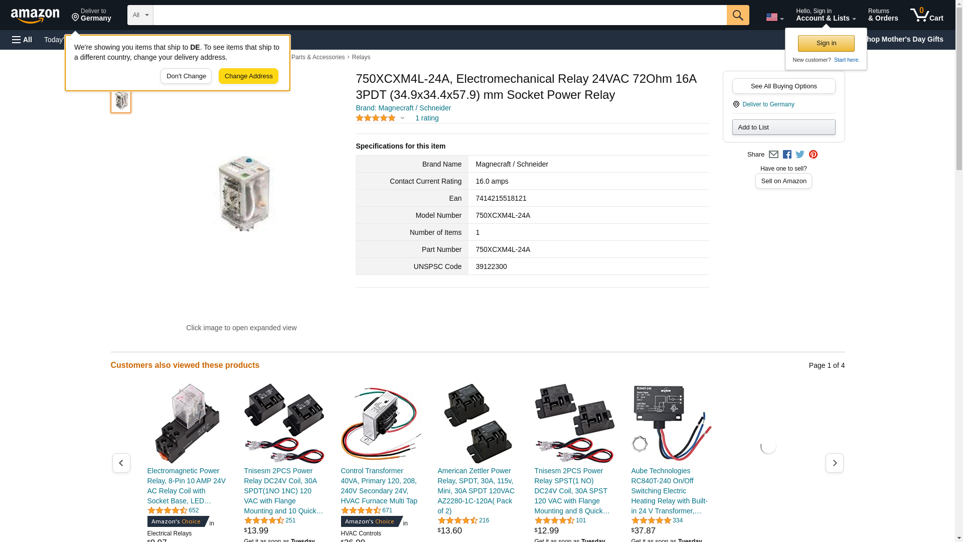 "Schneider Electric/Magnecraft 750XCXM4L-24A Relay; Octal Relay, 11 Pin, 3PDT, 16 Amp Rating, 24 VAC 50, 60Hz, Plug-in socket mount"