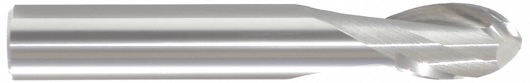 Carbide End Mill, 3/8" Shank Diameter, 2 Flute, Single, 2", Ball Nose End Style