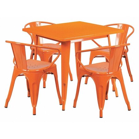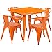 Flash Furniture Commercial Grade 31.5" Square Orange Metal Indoor-Outdoor Table Set with 4 Arm Chairs