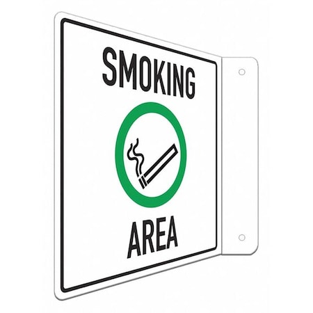 Safety Sign, L-Shape Projection, Number of Printed Sides 2, English, Sign Legend Smoking Area, Sign Legend Background Color White, Sign Legend Style Symbol and Text