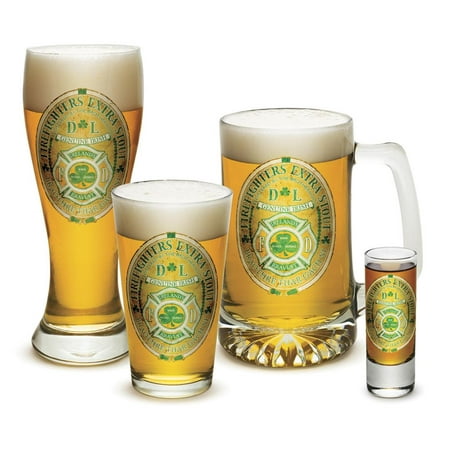 Beautiful set includes tankard, pint glass, pilsner glass and shooter. High quality low fired ceramic decal. Decal is applied by hand and fired in a Kiln at Low temperature. Tanker glassware made of high quality heavyweight glass.