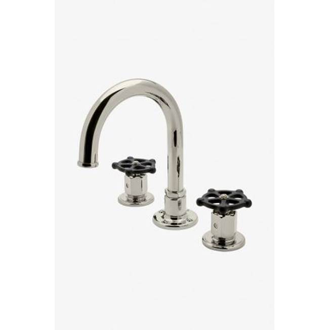 Waterworks - 07-91603-75262 - Regulator Gooseneck Three Hole Deck Mounted Lavatory Faucet with Black Wheel Handles in Matte Nickel, 1.2gpm