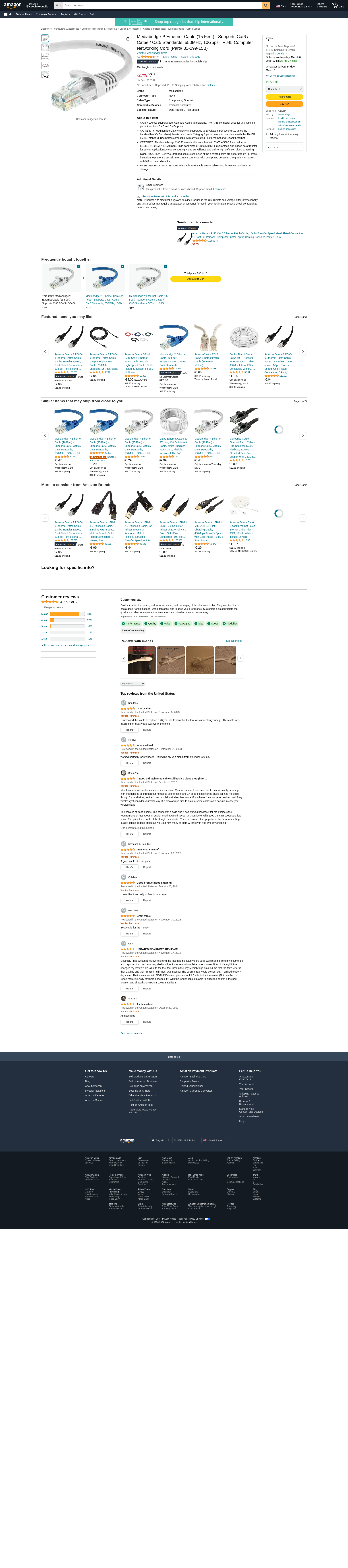 Mediabridge Ethernet Cable (15 Feet) - Supports Cat6 / Cat5e / Cat5 Standards, 550MHz, 10Gbps - RJ45 Computer Networking Cord (Part# 31-299-15B): Maxedbuy.com