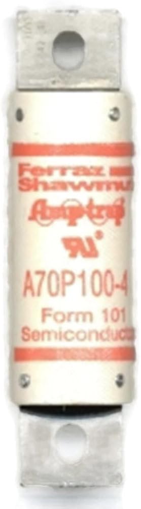 As an Amazon Associate, we earn from qualifying purchases. Ferraz Shamwut/Mersen A70P100-4, 100Amp 700V Cartridge Fuse Brand: Ferraz Shamwut/Mersen . B00I5QN6NO Gallery Attributes Brand name, Manufacturer name, ManufacturerBrand: Ferraz Shamwut/Mersen Attribute00, Attribute02No Attribute01A70P100-4 Attribute03, SKUB00I5QN6NO AttributeKey00Is Discontinued By Manufacturer AttributeKey01Manufacturer Part Number AttributeKey02ASIN dataSourceamazonScraper moq, multiple, tierMinQty11 qtyInStock0 snippetFerraz Shamwut/Mersen A70P100-4, 100Amp 700V Cartridge Fuse tierPrice1129.00 Distributor offers SellerSKUMOQIn stockMultiplePrices AmazonB00I5QN6NO111 @ $129.00