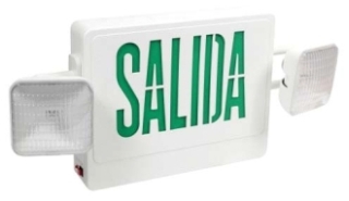 SECL-G-RC Led Salida Exit & Emer Combo, Wht Hsg,Gn Ltrs, Rem Cap