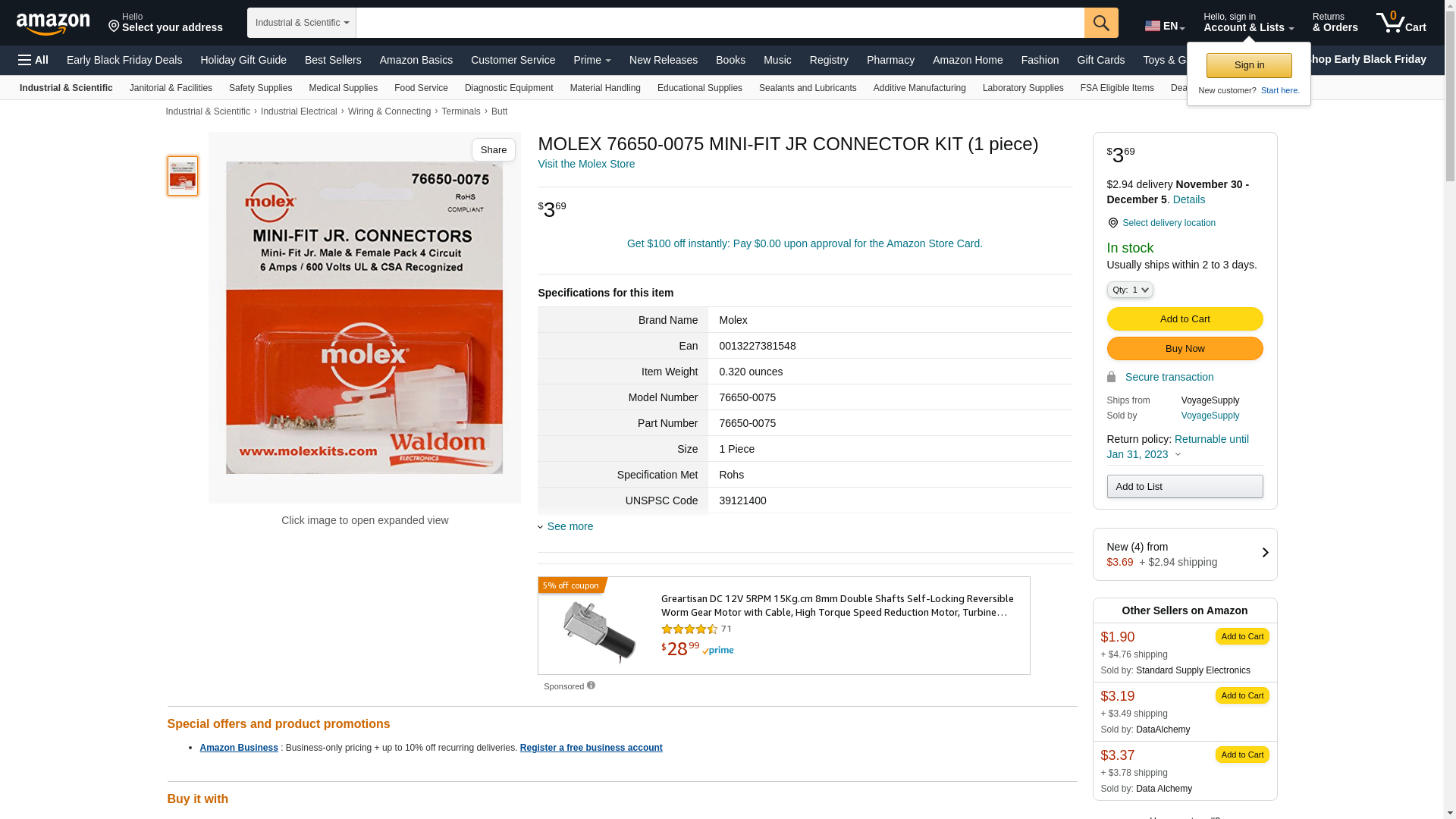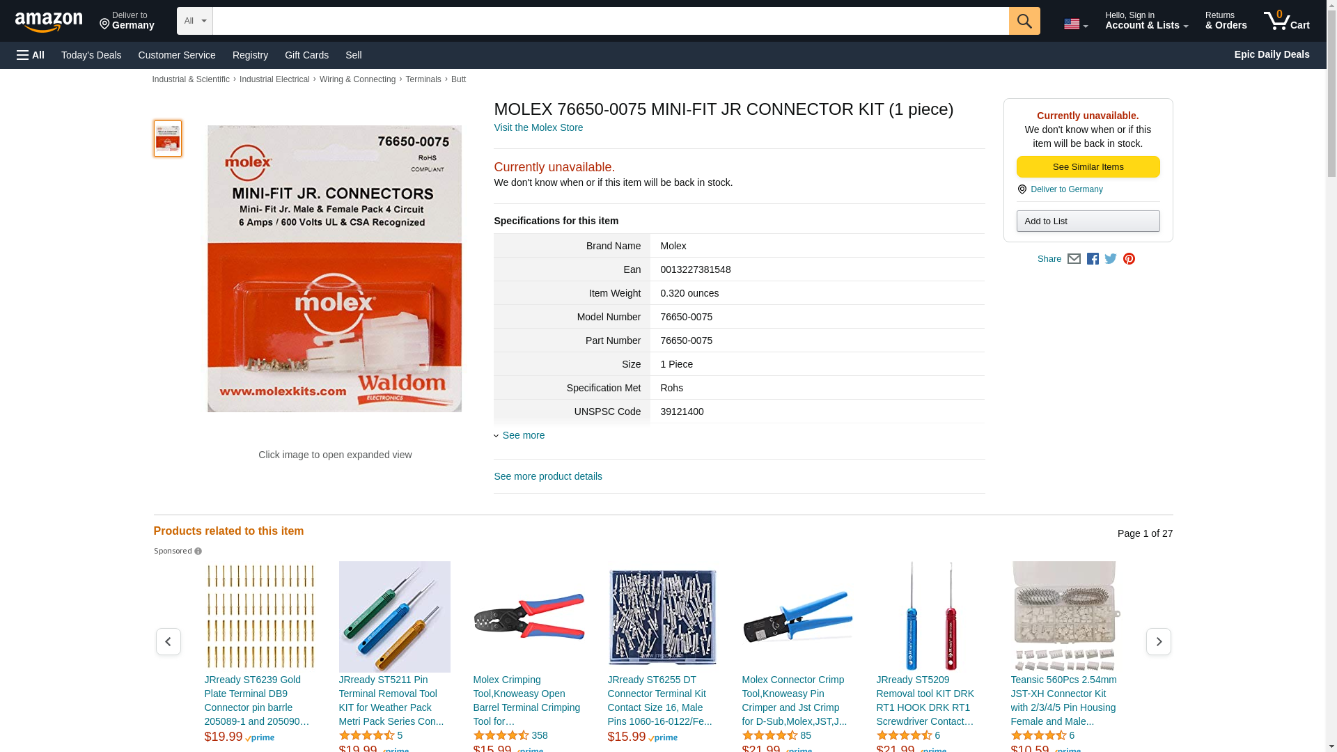 ![]() arcade-electronics.com | MOL-76650-0075 | 1 | -2 | 1 | 1 @ $1.16 |