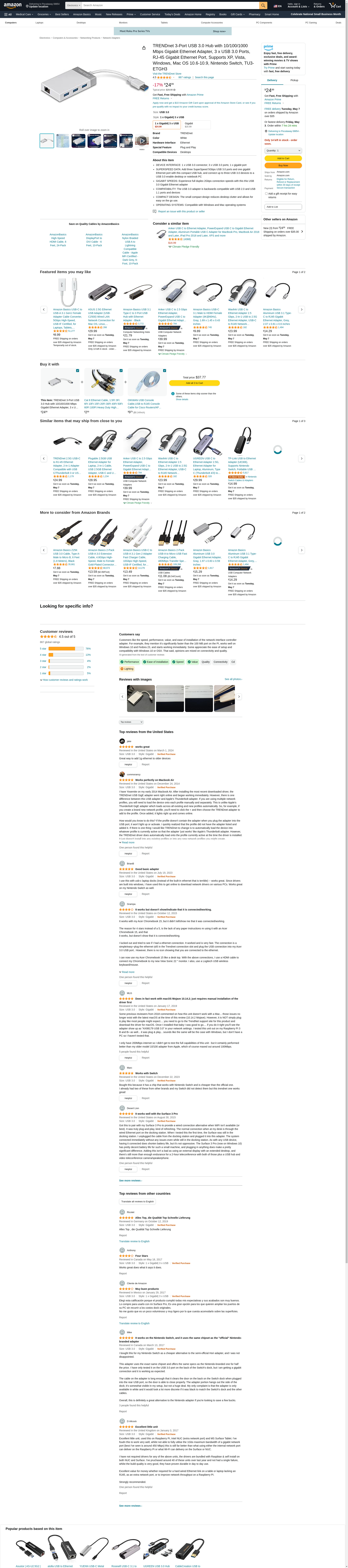 TRENDnet 3-Port USB 3.0 Hub with 10/100/1000 Mbps Gigabit Ethernet Adapter, 3 x USB 3.0 Ports, RJ-45 Gigabit Ethernet Port, Supports XP, Vista, Windows, Mac OS 10.6-10.9, Nintendo Switch, TU3-ETGH3