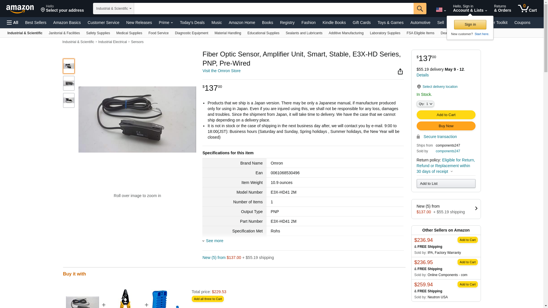 | Feature | <b>Price For:</b> Each<b>Return policy:</b> Item is non-cancelable and non-returnable<b>Order Unit:</b> Each\xa01 <b>Fiber Optic Sensor Type:</b>: Fibre Optic Sensor <b>SVHC:</b>: To Be Advised <b>Sensing Range Max:</b>: - |