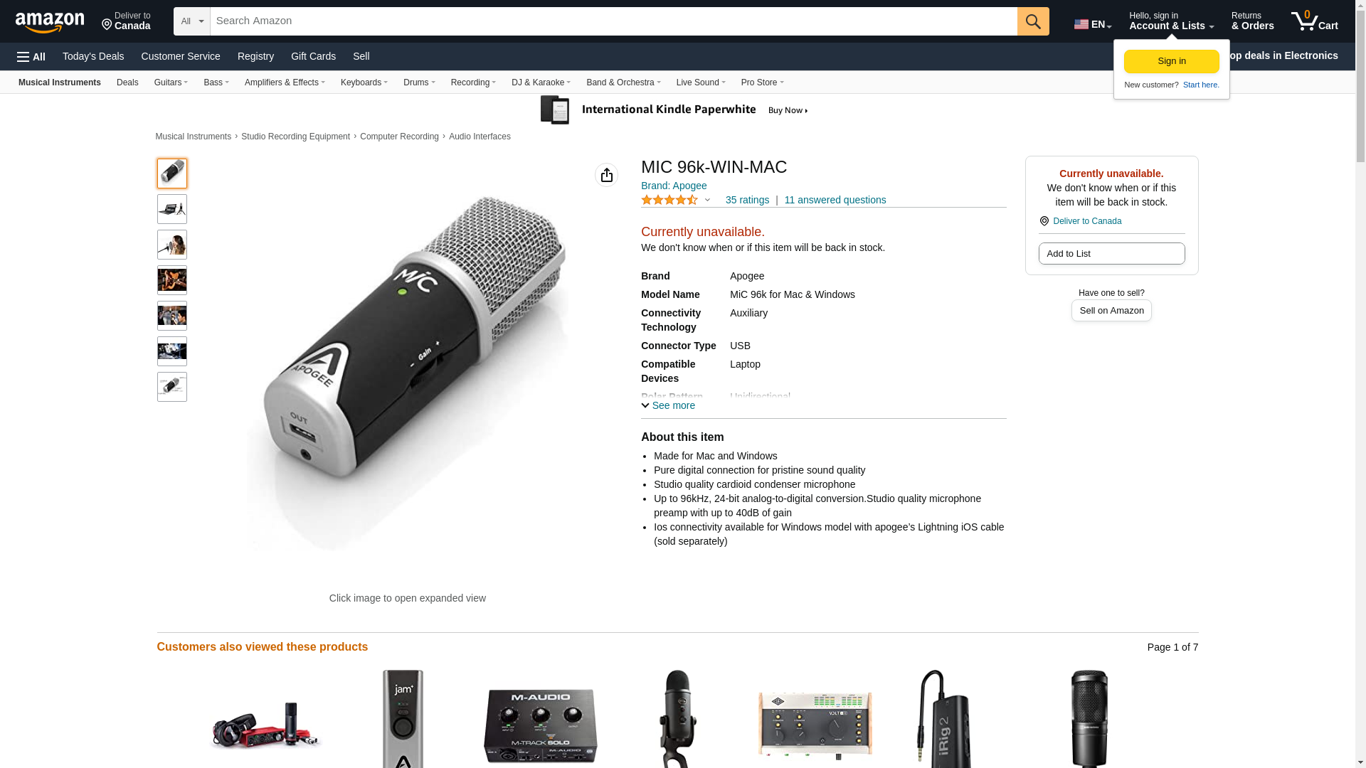 Apogee Electronics . MIC96K-WIN-MAC