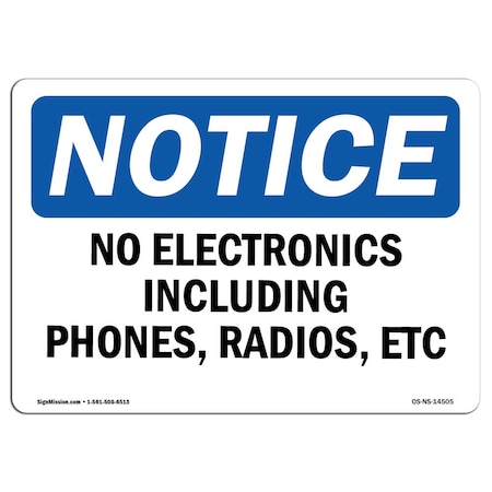 OSHA Notice Sign, No Electronics Including Phones Radios Etc, 14in X 10in Decal
