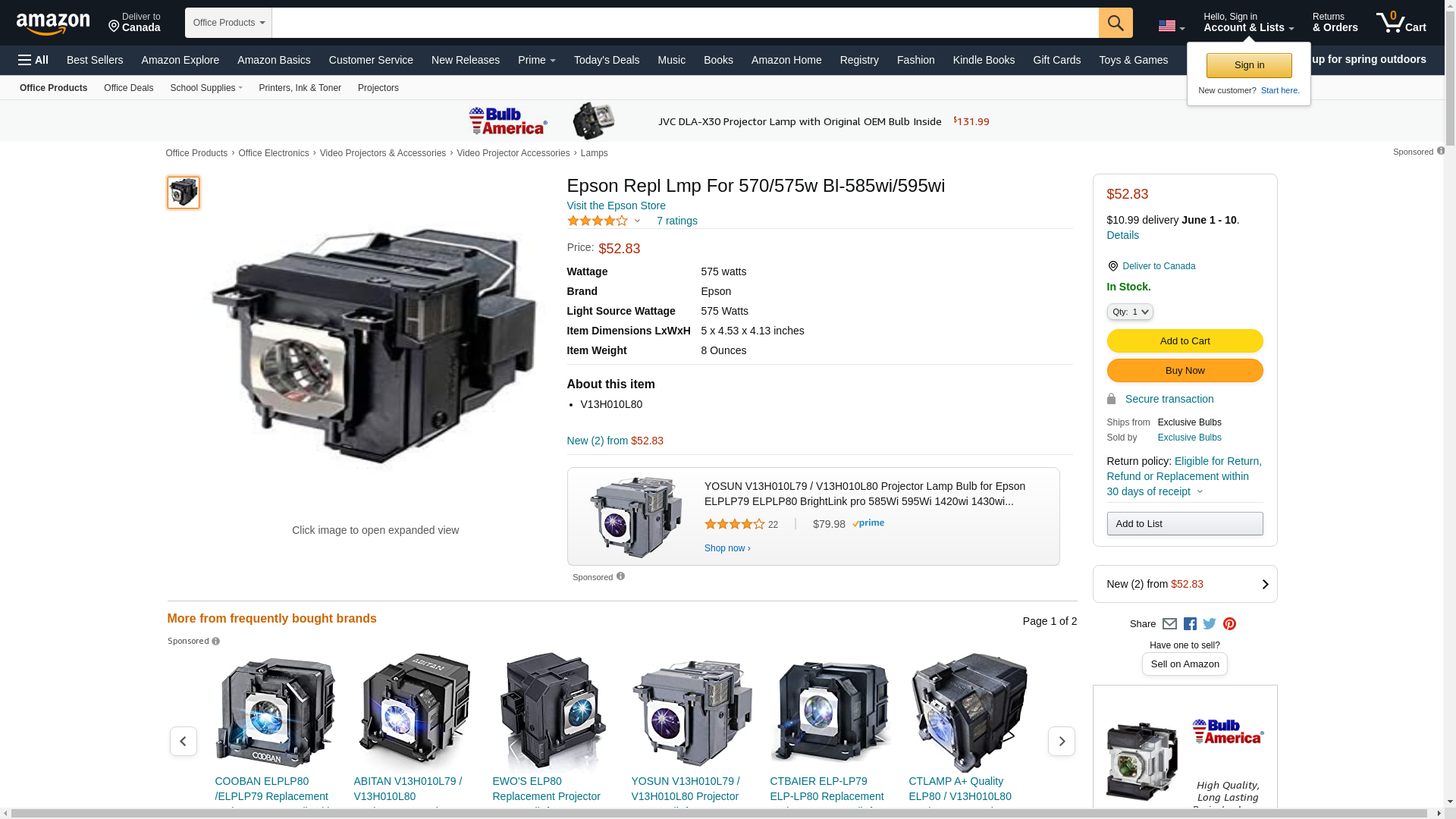 ![]() BulbAmerica | V13H010L80 | 1 | 1 | 1 @ $99.99 | |