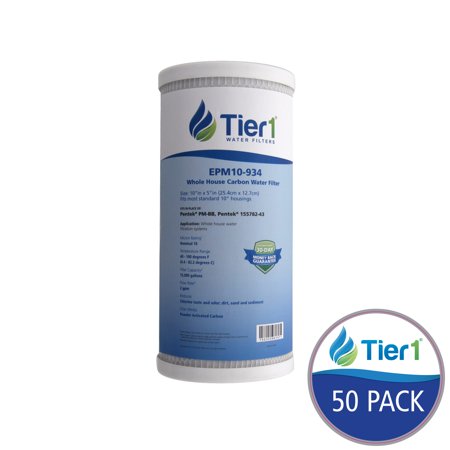 <div class="productDescriptionWrapper"> <ul> <li>Ships fast!</li> <li>High porosity design helps prevent plugging.</li> <li>Reduces chlorine taste and odor, dirt and sediment.</li> </ul> <br />The EPM-BB (50-Pack) Pentek comparable 10 x 4.5 inch whole house water filter by Tier1 provides cleaner, better tasting water for your home. Powder Activated Carbon Block filter media reduces contaminants as small as 10 microns to effectively reduce chlorine taste and odor, dirt, sand, and sediment. Order today! <div class="emptyClear"></div> </div>