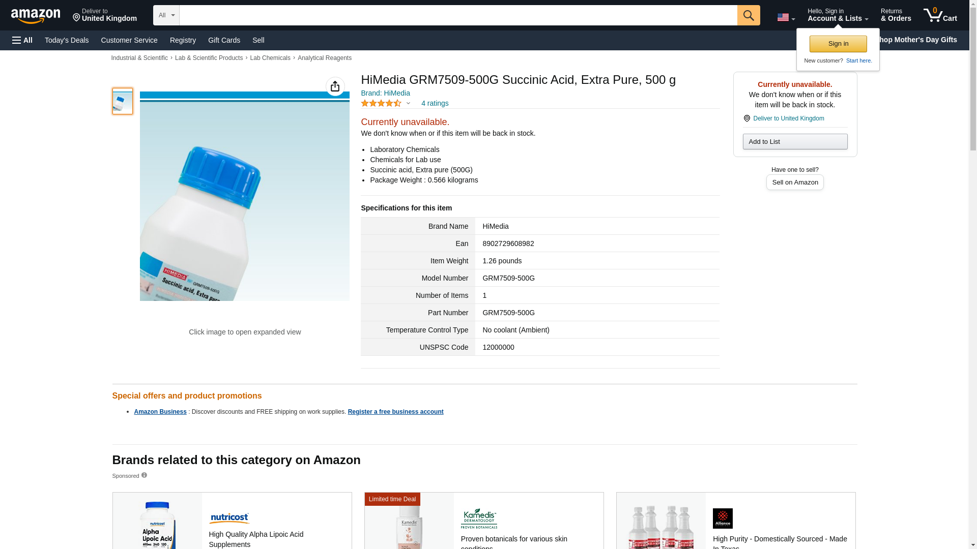 HiMedia GRM7509-500G Succinic Acid, Extra Pure, 500 g