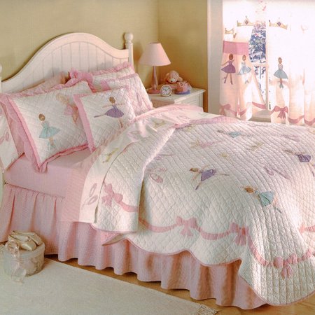 JYO1576 <br /> <b>Features</b> <br /> <ul> <li>Machine washable</li> <li>Ballet Lessons collection</li> <li>Product Type: Quilt/Coverlet set</li> <li>Size: Twin/Queen</li> <li>Style: Contemporary</li> <li>Material: Cotton</li> <li>Cleaning Method: Machine washable</li> <li>Color: Pink; White</li> <li>Pattern: Graphic Print & Text</li> </ul>