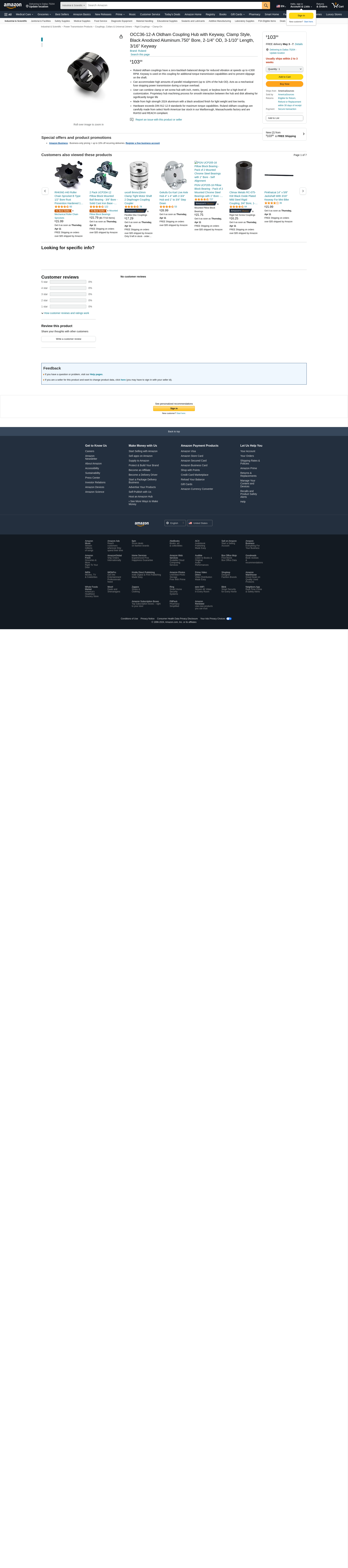 Ruland OCC36-12-A Oldham Coupling Hub with Keyway, Clamp Style, Black Anodized Aluminum.750" Bore, 2-1/4" OD, 3-1/10" Length, 3/16" Keyway