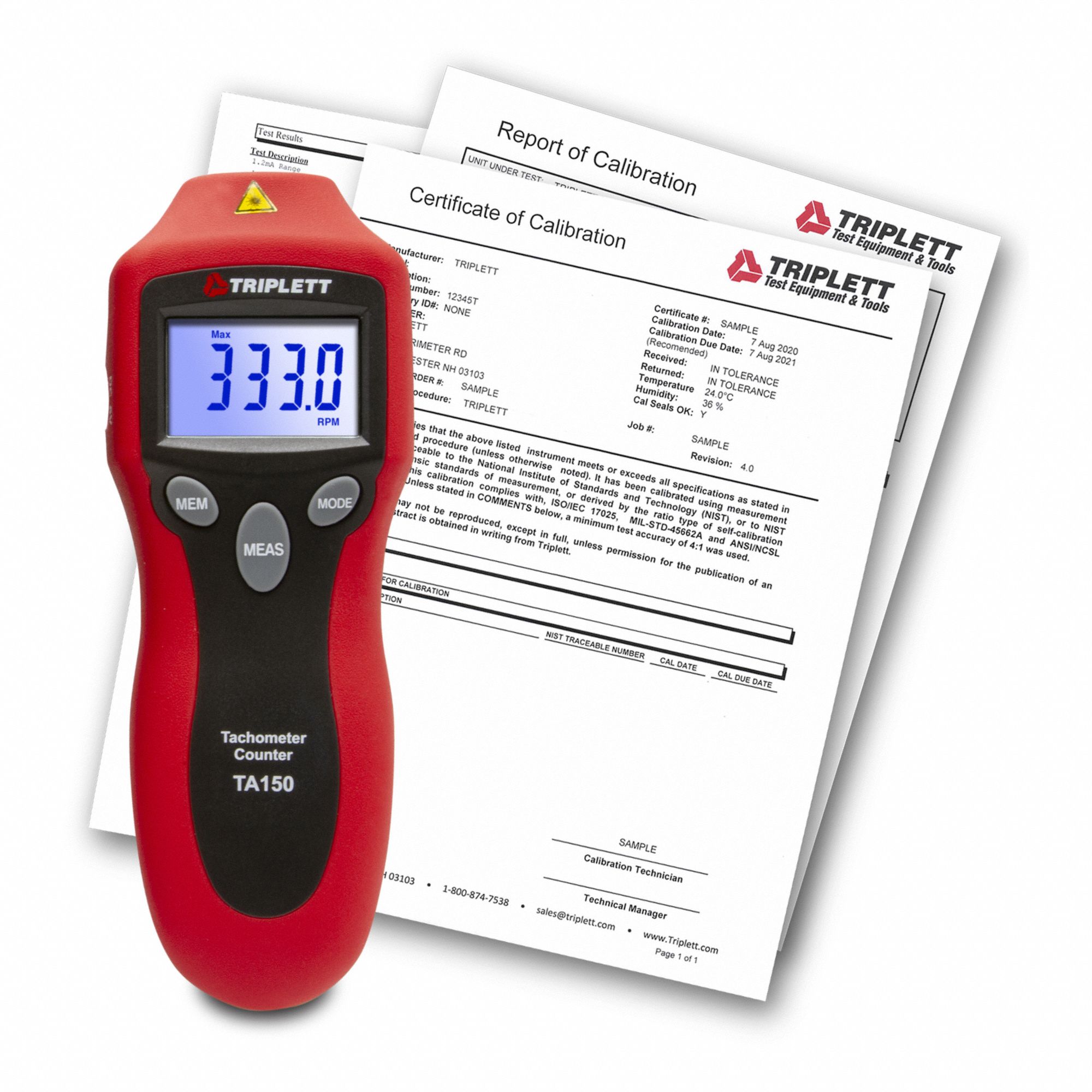 Triplett TA150 Non-Contact Laser Photo Tachometer with Certificate of Calibration to NIST