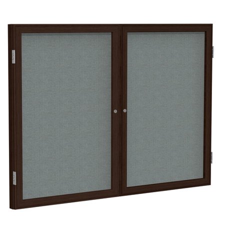 Ghent 2 Door Enclosed Fabric Bulletin Board, Gray Fabric/Walnut Frame, 48"W x 36"H