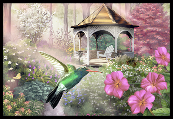 Caroline's Treasures PTW2052MAT Garden Gazebo Hummingbird Door Mat, Indoor Rug or Outdoor Welcome Mat 18x27 Doormat, 27" L x 18" W, Multicolor