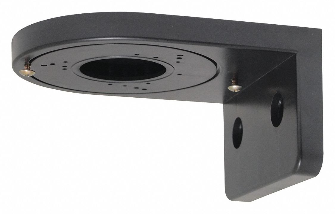 'Wall Mount Bracket, For Use With Surveillance Cameras, Fits Dome Cameras, Material Plastic, Load Capacity 3 lb., Mounting Wall, Height 3-7/64 In., Depth 5 In., Width 5 In., Length 6-19/64 In., Color Black, Pitch 90 Degrees , Function Camera Mounting, Characteristics Indoor Camera Mount, Waterproof No, Includes Mount, Mounting Screws, Caps'