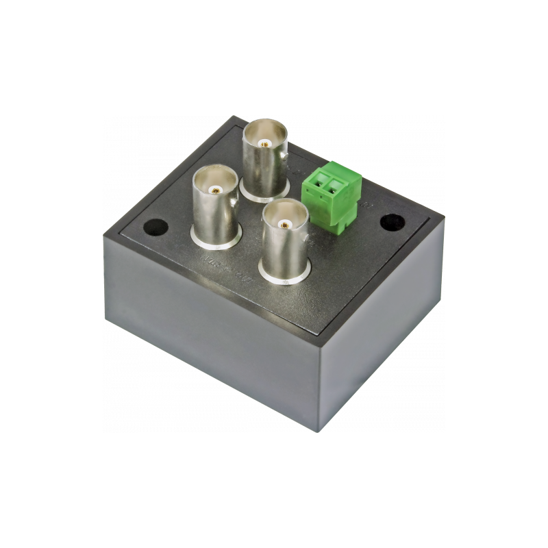 Seco-Larm VA-1102B-WYQ 4-in-1 HD Video Distributor, 1 input, 2 outputs. Compatible with TVI, CVI, AHD, and Analog video formats.