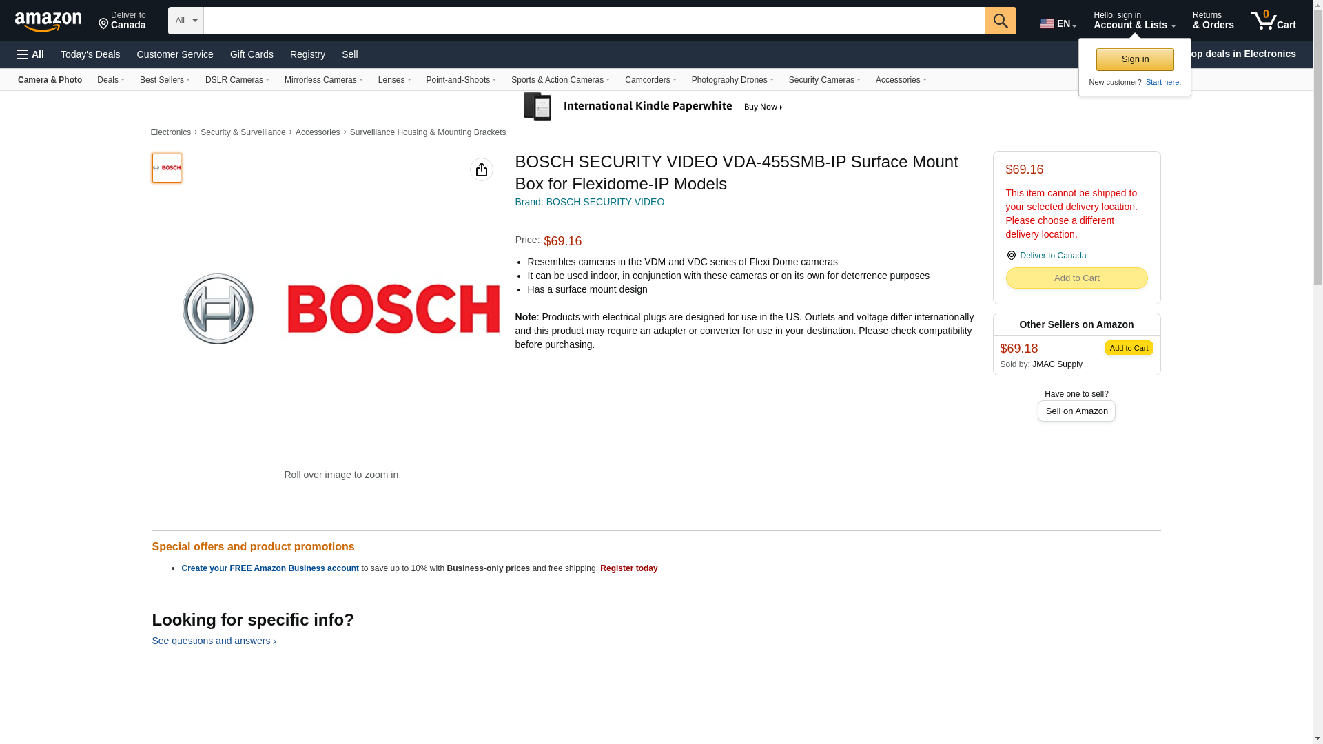 BOSCH VDA-455SMB-IP Surface Mount Box For Flexidome Ip Models (Item Also Known As : VDA-455SMB-IP)