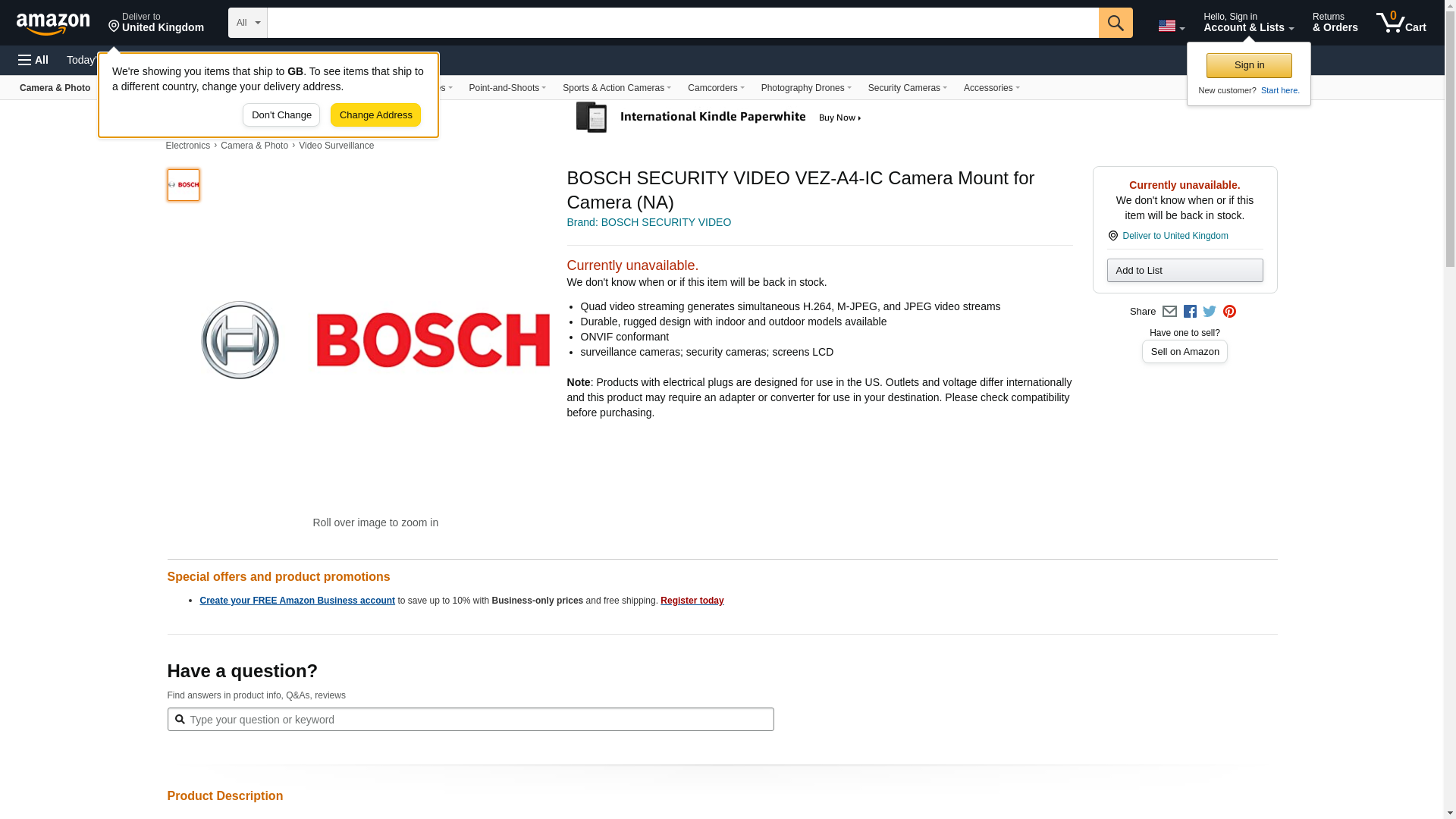 BOSCH SECURITY VIDEO VEZ-A4-IC Camera Mount for Camera (NA)